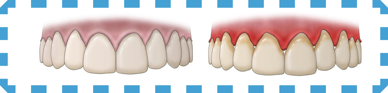 - Гингивит — воспаление дёсен из-за налёта и бактерий;